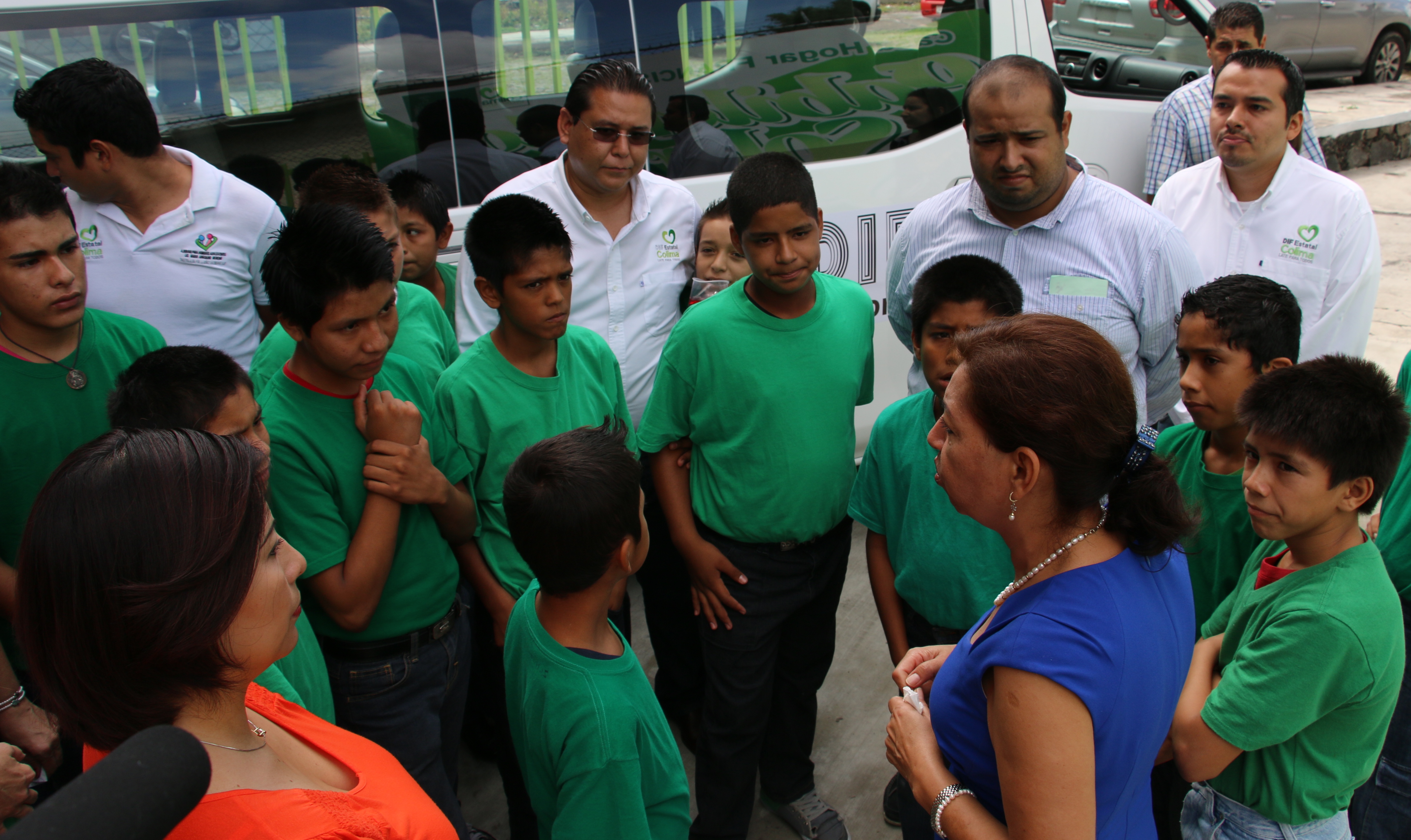 Con el propósito de ofrecer un servicio seguro y de calidad en el traslado a sus centros educativos de los menores atendidos en el Albergue para Adolescentes Niños “Mario Anguiano Moreno”, la presidenta del DIF y Voluntariado estatal, Alma Delia Arreola de Anguiano, entregó al administrador de dicho albergue, Iván Daniel Guerrero González, un vehículo tipo “Urvan” modelo 2015 con capacidad para 12 pasajeros.