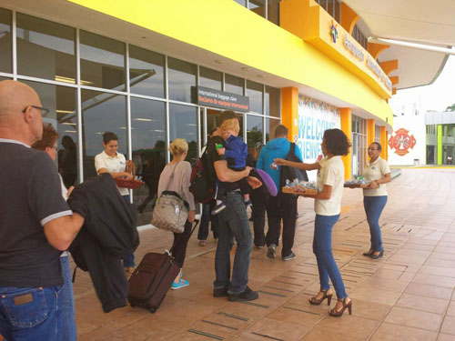 Este fin de semana, la Oficina de Convenciones y Visitantes en Manzanillo, realizó una bienvenida a los pasajeros de la aerolínea US Airways procedente de Phoenix, Arizona, línea comercial que regresa a nuestro destino por la temporada de invierno incrementado así el flujo de turistas extranjeros a la entidad, beneficiando a todo el sector turístico y permitiendo a los propios colimenses trasladarse a dicha ciudad en los Estados Unidos, fortaleciendo así el intercambio turístico y comercial entre ambos destinos.