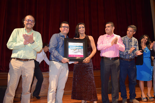 En el mismo evento y previo a la proyección del National Theatre Live que difunde a nivel internacional una selección de las mejores propuestas teatrales de Londres, el secretario de Cultura hizo entrega del Premio Estatal de Dramaturgia 2015 a María Eugenia del Carmen Solorio García (Veracruz, 1968), actriz, vestuarista y Coordinadora General de la Compañía de Teatro de la Universidad de Colima.