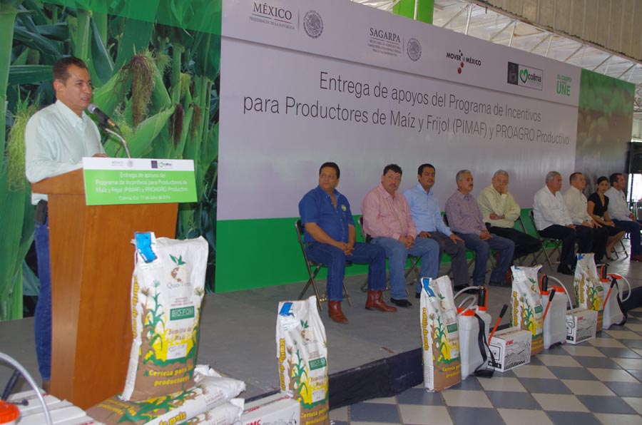 Luego de las gestiones realizadas por el gobernador Mario Anguiano Moreno ante el gobierno federal para la asignación de más recursos para el campo, inició la entrega de apoyos del Programa de Incentivos Productivos para Productores de Maíz y Frijol (PIMAF), y de PROAGRO Productivo en el estado de Colima, con lo que beneficia a productores del campo colimense y a sus familias.