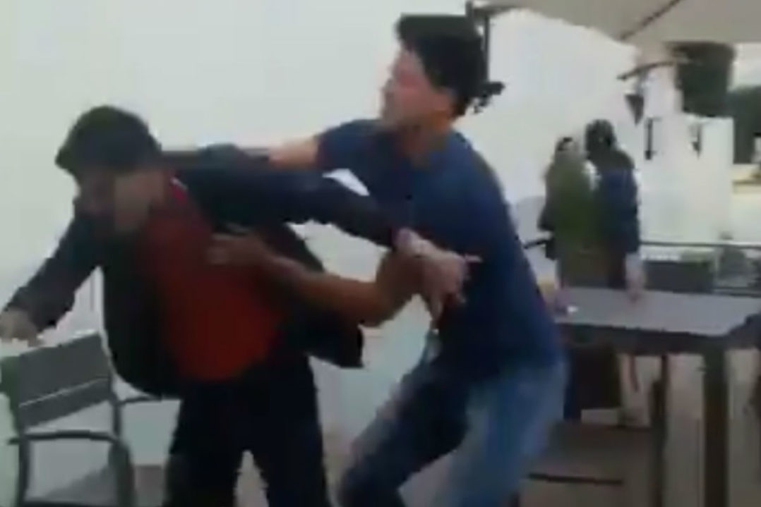 En un segundo video en redes sociales, dos jóvenes agreden a otro que está en una cafetería, supuestamente con su novia.