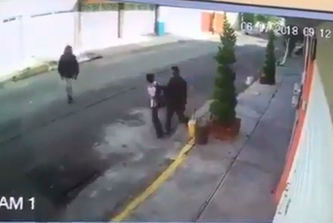 En menos de 30 segundos, ambos sujetos someten al niño (quien al principio se resistió al robo) y logran quitarle sus pertenencias.
