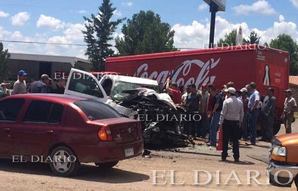 Par261009361La ponchadura de una pick up a la altura del kilómetro 35 de la carretera Cuauhtémoc al seccional de Álvaro Obregón, provocó la colisión con un camión repartidor de la empresa Coca Cola cuyo saldo fue de 4 lesionados