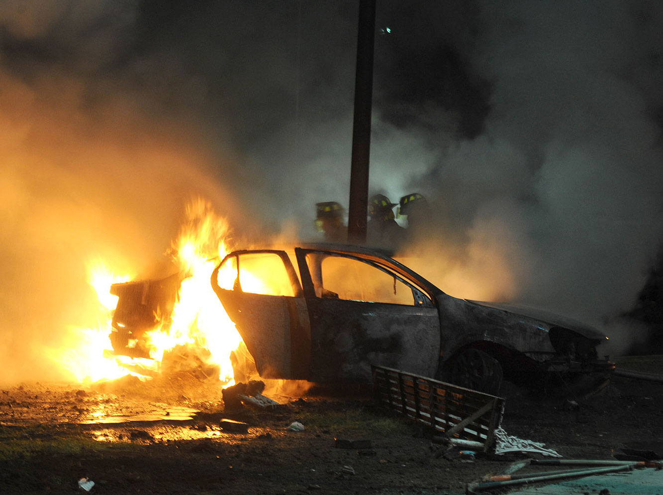El choque se produjo cuando el conductor se impactó contra un poste, ocasionando chispas que hicieron contacto con el combustible y a su vez se suscitara un incendio donde las llamas abarcaron todo el vehículo.