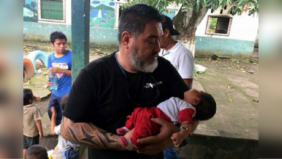 Se alojó al pie del volcán, donde la situación es crítica. Pagó de su bolsillo, y con los donativos de sus amigos, un hotel que quedó en pie. Antes de partir, pidió a toda la comunidad que le diera cosas que son realmente necesarias.