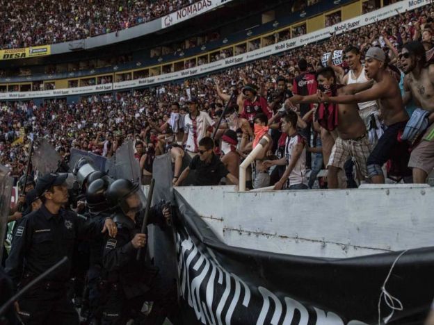 Los hechos ocurrieron sobre el minuto 57, incluso Luis Venegas debió empujar a uno de estos pseudoaficionados que se dirigía hacia la banca del Atlas. Todos los jugadores se resguardaron en sus bancas.