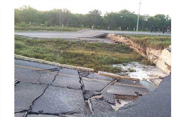 El hundimiento de un tramo de la carretera Cancún-Playa del Carmen obligó el cierre total de la única vía que comunica el corredor turístico Riviera Maya con el aeropuerto internacional.