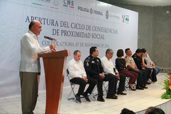 El Director Nacional de Proximidad Social de la Policía Federal, Miguel Ángel Martínez Colunga precisó que la labor de la prevención del delito es fundamental y necesaria, que la proximidad social, desea reconstruir el tejido social, deseamos que la ciudadanía y los policías estén más cerca, urge una mayor participación ciudadana para evitar mayores adicciones de los jóvenes, dijo finalmente que este esfuerzo de proximidad social es parte de las acciones que realizan en todo el país y que con gusto acudieron a Colima por la solicitud que le hizo el Gobierno del Estado y la Secretaría de Seguridad Pública, para capacitar a los policías estatales.