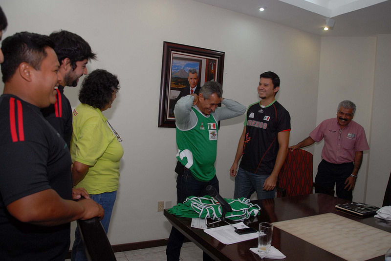 En la Sala de Juntas del despacho del Gobernador, el mandatario estatal entregó los recursos a la entrenadora Leticia Ramírez Sánchez para apoyar con el trasporte terrestre de Colima a México y su regreso, los viáticos para la alimentación del selectivo y otorgó los uniformes para las competencias, los cuales incluyen el logo de “Colima, Capital Americana de la Cultura”.
