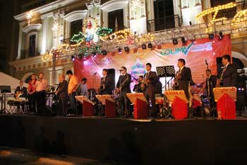 Gran ambiente se vivió este lunes por la noche en el jardín Libertad, con la presentación de La Orquesta  de Horacio “Colorado” Naranjo, como parte del programa del 2º Festival Navideño Magia y Tradición, que viene promoviendo el Ayuntamiento de Colima que preside Federico Rangel Lozano.