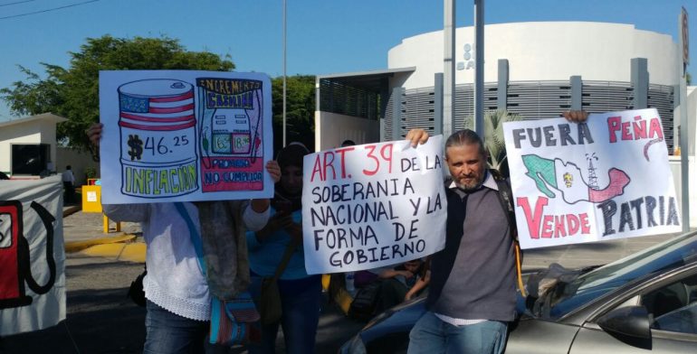02/01/2017.- Desde las 8:30 y hasta las 10:55 horas, se desarrolló una manifestación de ciudadanos, algunos que se dijeron libres, otros de diferentes agrupaciones que decidieron unirse a la manifestación para protestar contra el alza de la gasolina que impone el gobierno federal. Iniciaron a pintar los carros con la autorización de sus choferes con las consignas de alto al gasolinazo, para después, tapar el acceso de norte a Sur, por la entrada a la urbe capitalina, lo que entorpeció por un momento las entradas a trabajar con puntualidad, el segundo carril en obstruirse fue frente a las instalaciones de Ciapacov.