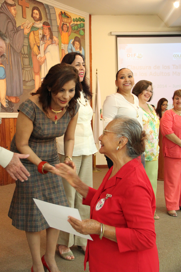 La Presidenta del DIF Municipal Colima, Lety Contreras de Rangel, encabezó la ceremonia de clausura de los talleres ocupacionales de los grupos de la tercera edad del Parque Hidalgo y Los Tepames, en una ceremonia que se llevó a cabo en el auditorio Manuel Álvarez, de la Presidencia Municipal de Colima.