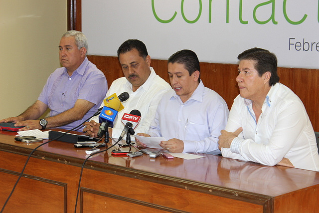 8 de Febrero 2014; Colima, Col (Colima Medios) – El Procurador de Justicia del Estado, Marcos Santana Montes, acompañado por el Delegado de Sedesol en Colima, Carlos Cruz Mendoza, dio a conocer que no existen elementos que acrediten la comisión del delito de fraude sobre supuestas irregularidades en la entrega de apoyos económicos de un programa federal a través de tarjetas bancarias; lo anterior lo afirmó tras haber llevado a cabo las indagatorias correspondientes, por instrucciones del gobernador Mario Anguiano Moreno, tras la denuncia pública de un grupo de jornaleros agrícolas.
