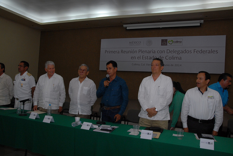El gobernador Mario Anguiano Moreno, acompañado por el director general de la Zona Occidente de la Secretaría de Gobernación, Salvador Rizo Ayala, encabezó la Primera Reunión Plenaria con delegados federales en la entidad, con el propósito de estrechar la coordinación entre el estado y la federación, así como para dar seguimiento a los avances de los compromisos y proyectos estratégicos que el Presidente Enrique Peña Nieto adquirió con Colima y los colimenses.