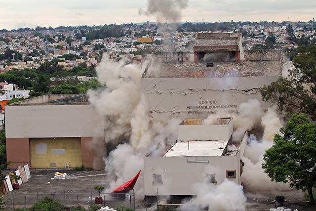 JALISCO, 4 de julio.- Esta mañana fue demolido el edificio Hermenegildo Romo García en donde se localizaban las instalaciones que algún día pertenecieron a la Federación de Estudiantes de Guadalajara (FEG).