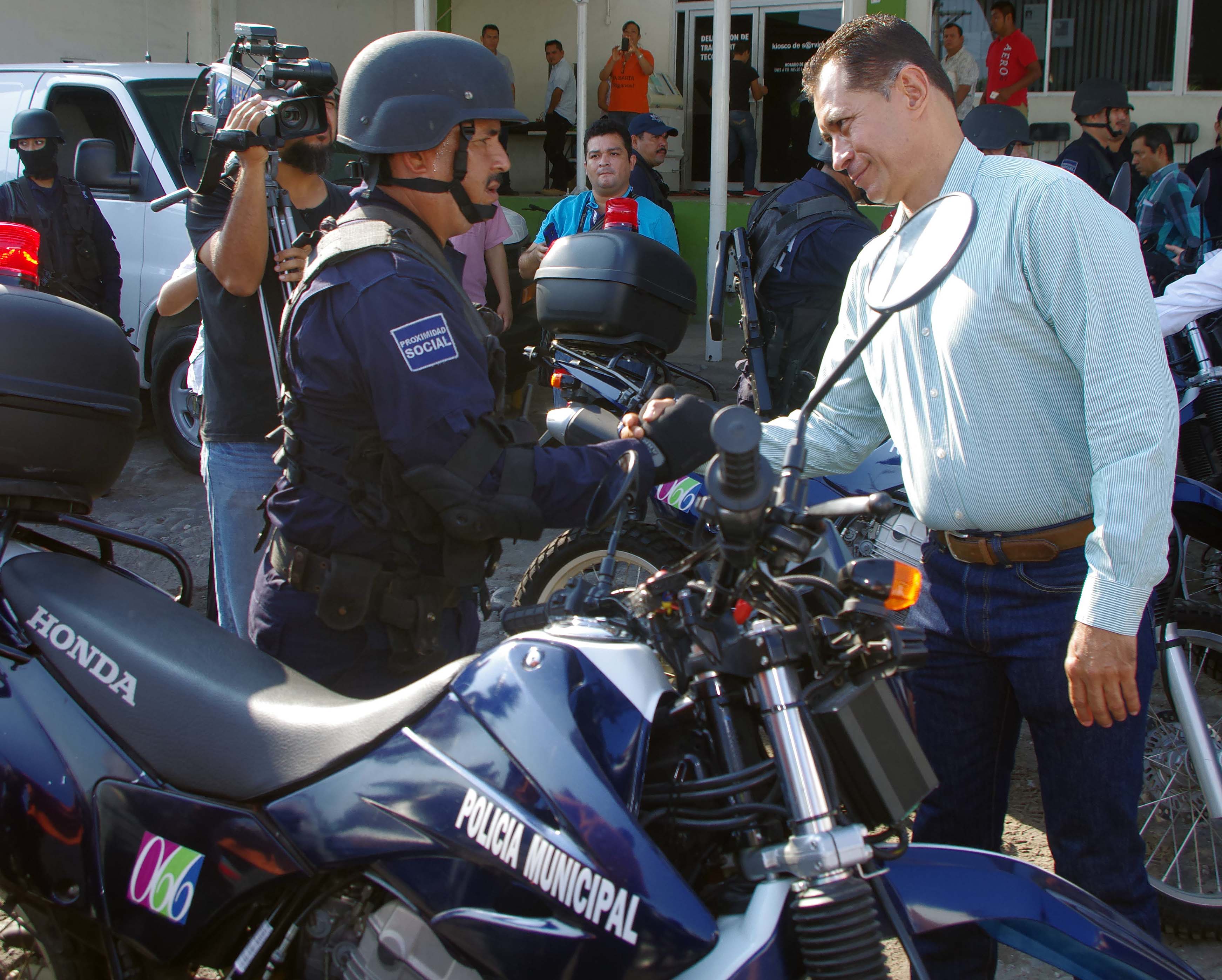 En la Comandancia de Seguridad Pública y Policía Vial de Tecomán, el mandatario estatal entregó 8 motopatrullas, 4 patrullas, 50 chalecos antibalas, 15 equipos de GPS y 600 uniformes para todos los elementos de la corporación de seguridad y vialidad, además de la rehabilitación a las instalaciones de este complejo de seguridad.