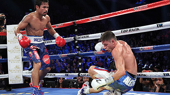 Con este triunfo, Pacquiao elevó su récord a 57-5-2, con 38 nocauts. Algieri, actual campeón superligero de la OMB, perdió el invicto y quedó con un historial de 20-1, con 8 nocauts.