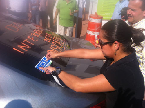 foto2 pega de calcas tecománEn el marco de las actividades conmemorativas al Día Internacional y Estatal de las Personas con discapacidad, este día se llevó a cabo a fuera de las instalaciones de la Casa de la Cultura de Tecomán, una campaña de pega de calcas con el mensaje “Yo si respeto tu espacio”, la cual tiene como objetivo central el de crear conciencia entre los automovilistas acerca de la importancia del respeto a los espacios destinados al uso exclusivo de las personas con discapacidad, a fin de que puedan integrarse de manera más activa al desarrollo social.