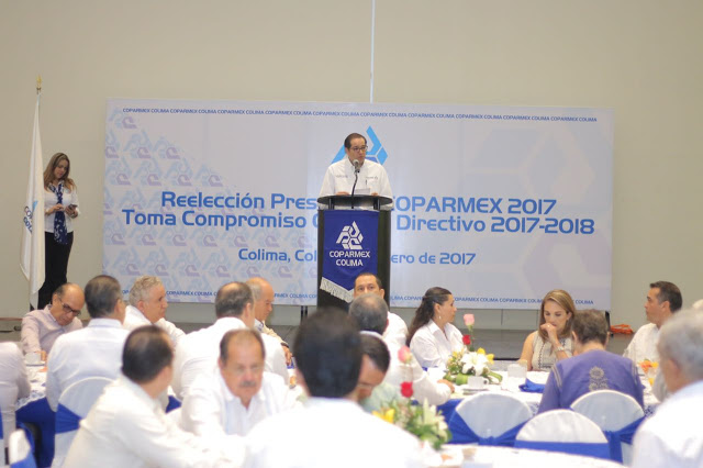 Colima Medios 09/02/2017.- El gobernador José Ignacio Peralta Sánchez encabezó el evento en donde se llevó a cabo la toma de compromiso de Mario Carlos Moncada Cantú como presidente de Coparmex Colima para el periodo 2017-2018. En el evento el mandatario estatal aseguró que los retos de nuestro tiempo tienen solución, pero para alcanzarla requerimos ejercicios cada vez más amplios de diálogo y reflexión. Ante la presencia del presidente nacional del organismo patronal, Gustavo de Hoyos Walther, el titular del Ejecutivo Estatal dijo que es grande el reto para quienes asumen en este momento la conducción de los destinos de organizaciones, instituciones y sociedades.