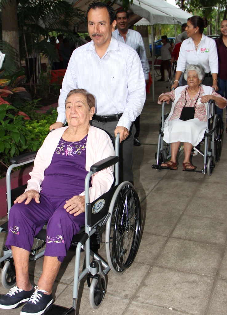 COLIMA.- El DIF Municipal Colima está cumpliendo a cabalidad con la visión humanista de la actual administración”, aseguró el edil capitalino, Federico Rangel Lozano, durante la entrega de sillas de ruedas a personas con discapacidad y de la tercera edad. Esta se llevó a cabo en el edifico central del Parque Hidalgo, como respuesta a las peticiones que se han recibido y fue posible gracias al apoyo del Voluntariado que trabaja de la mano con la institución.