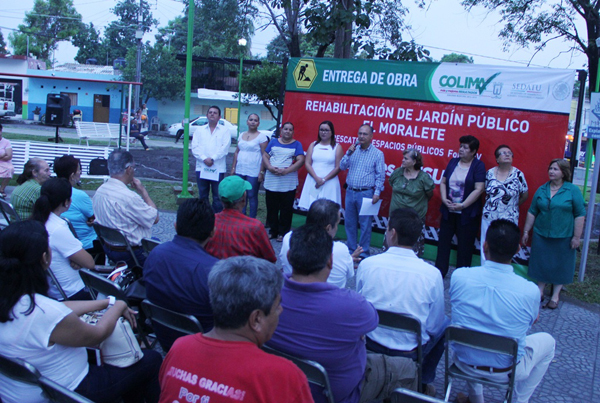 El ayuntamiento de Colima, hizo entrega de la remodelación del jardín de la colonia EL Moralete, con lo que se da respuesta a una de las demandas más añejas de la población, tomando en cuenta que tenía más de 25 años sin ninguna intervención por parte de la autoridad, mientras que con los trabajos realizados podrán disfrutar de este espacio sin ningún problema por un período de 50 años.