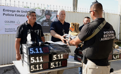 En acto realizado en las instalaciones de la corporación policial, el Comisario de la Policía Estatal Acreditable, Francisco Javier Salazar Salazar, en representación del secretario de Seguridad Pública del Estado, contraalmirante Francisco Javier Castaño Suárez, realizó entrega de este equipo táctico, consistiendo en botas, pantalón y camisa, como parte del proceso de mejoramiento y reforzamiento de las instituciones policiales.