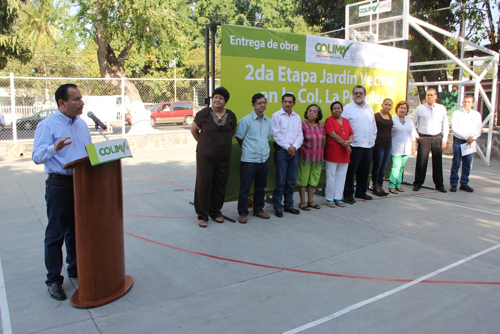 Con una inversión de 1 millón 337 mil 015 pesos, el alcalde de Colima, Federico Rangel Lozano y el delegado de la Secretaría de Desarrollo Agrario, Territorial y Urbano (Sedatu), Oscar Zurroza Barrera, entregaron la segunda etapa del jardín vecinal de la colonia La Popular, acción que beneficia directamente a cientos de familias que habitan en la colonia y barrios aledaños.