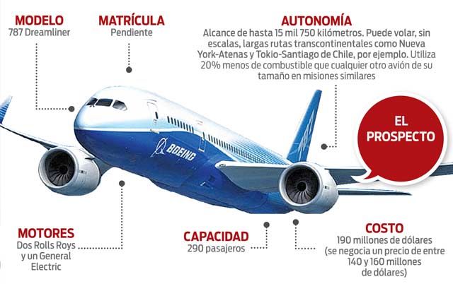 El nuevo avión presidencial tiene doble pasillo y puede transportar 250 pasajeros sentados cómodamente, tiene bar, sala de cine, alcanza una velocidad de casi mil kilómetros por hora no lo tiene ni los presidentes de los países más ricos del mundo como son Estados Unidos, China o Rusia.