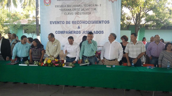 Invitado de honor al acto de entrega de reconocimientos a compañeros jubilados de la Secundaria Técnica “Susana Ortíz Silva” de Coquimatlán, el alcalde Orlando Lino manifestó su respaldo a los educadores de ciudadanos.