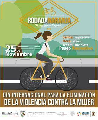 15239402_1183728788387129_296405087_n-1Colima Medios 25/11/2016.- Con el objetivo de crear conciencia y sensibilización sobre la violencia hacia las mujeres, este viernes 25 de noviembre se realizará la Rodada Naranja, “Ponte en sus zapatos”, que iniciará a las 18:00 horas en el Jardín Núñez y recorrerá 5km por las principales calles del centro de la ciudad.