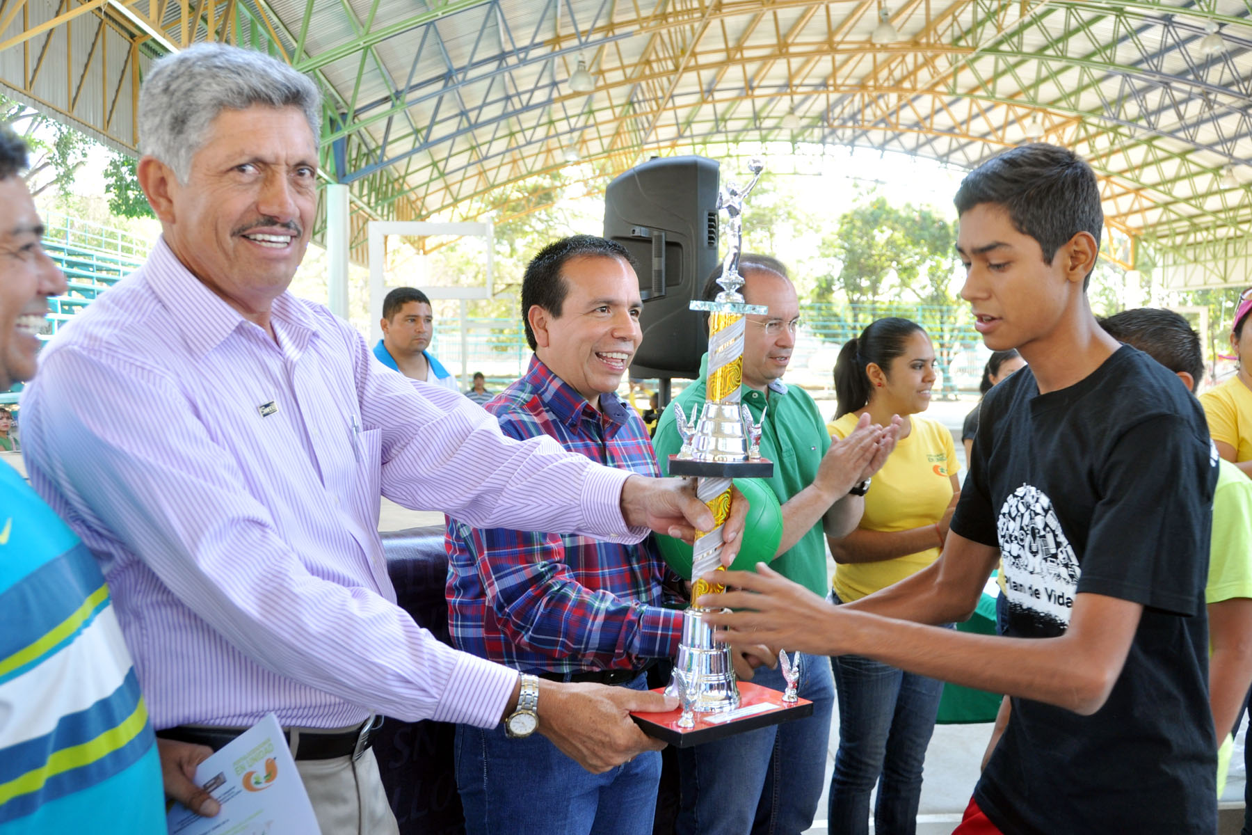 Posterior a la matrogimnasia se entregaron constancias a los involucrados en el proyecto y se dieron los trofeos a los equipos campeones de voleibol varonil y fútbol femenil del 2do. Torneo Intersecundarias del municipio de Villa de Álvarez.