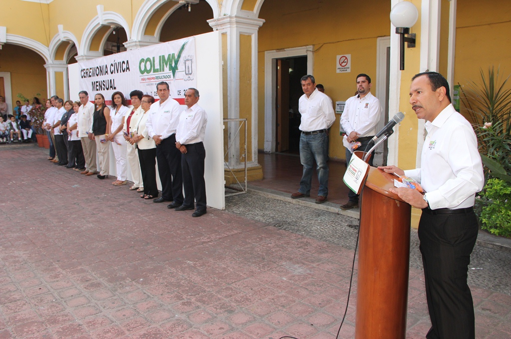 El presidente municipal de Colima, Federico Rangel Lozano tras encabezar la ceremonia cívica mensual que se realiza en el ayuntamiento, hizo un llamado a todos los funcionarios y trabajadores para fortalecer la unidad en este mes de reflexión, “porque nos debemos a la gente, porque trabajamos para la población que merece más y mejores resultados”.