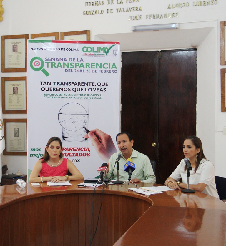 El presidente municipal de Colima, Federico Rangel Lozano dio a conocer que del 24 al 28 de febrero se llevará a cabo La Semana Municipal de la Transparencia, en la que tendrán participación con conferencias magistrales, reconocidos expertos de la materia en el país como son Julio Alejandro Téllez Valdés y Oscar Guerra Ford.