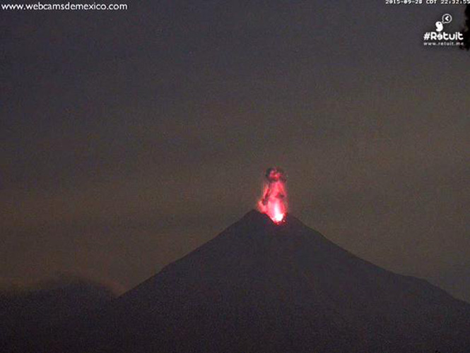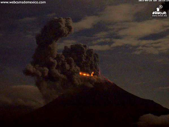30 de septiembre.- El Volcán de Fuego de Colima ha observado una intensa actividad en las últimas horas, con la emisión de densas columnas de ceniza y fumarolas de más de más de un kilómetro de altura.