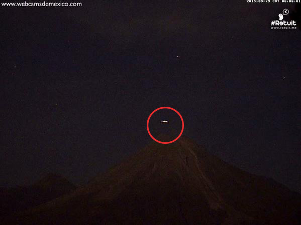 Por si no bastara, una extraña luz fue captada delante del volcán, la mañana de este martes, por las cámaras de Webcams