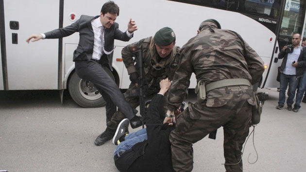 Yusuf Yerkel, asesor del primer ministro turco, Recep Tayyip Erdogan, ha provocado un escándalo al aparecer en una fotografía pateando a un manifestante el 14 de mayo en Soma, escenario de la reciente tragedia minera.