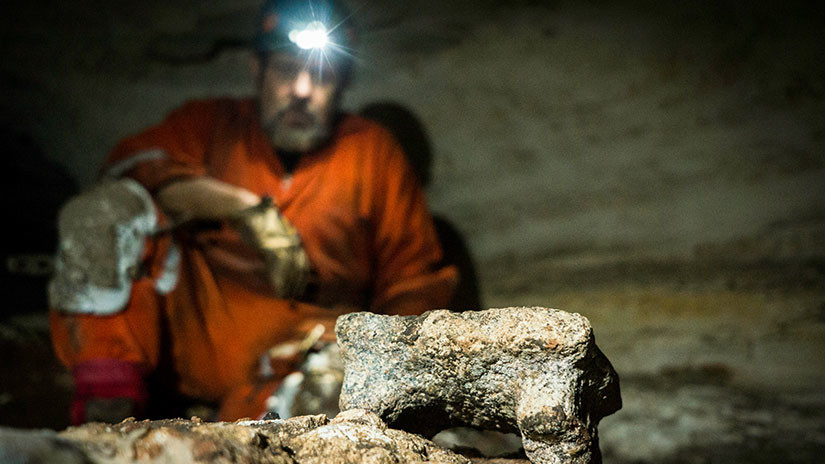 Restos precolombinos hallados en una cueva de las las ruinas mayas del Chichén Itzá, México, el 19 de febrero de 2019. / Karla Ortega / AP