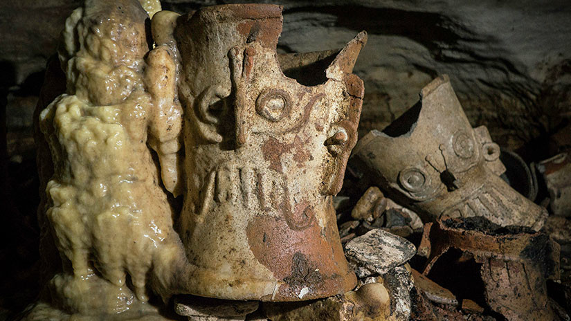 Entre los objetos encontrados dentro figuran siete quemadores de incienso en forma de Chaac, una importante deidad maya asociada a la lluvia. Se estima que los quemadores más grandes datan de entre los años 700 y 1.000 después de Cristo.