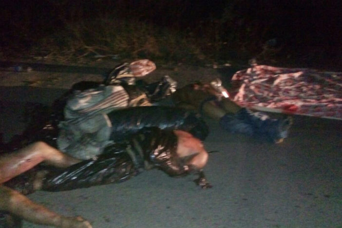 Reportes oficiales refieren que cerca de las 23:00 horas de ayer fueron localizados los restos de ocho personas sobre el distribuidor vial que conecta el poblado de Tixtla con el municipio de Chilapa.