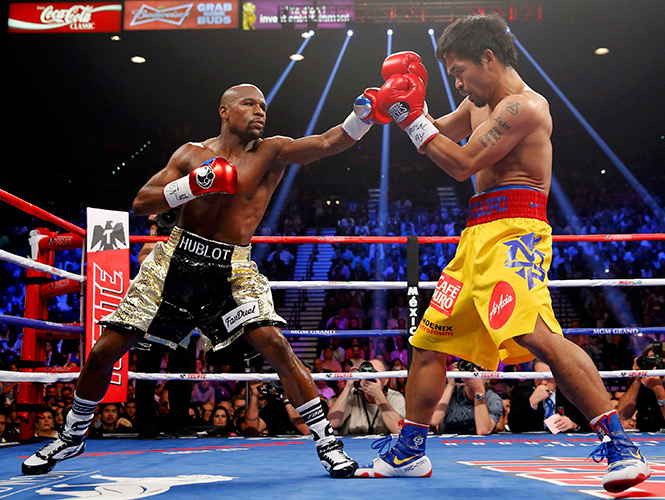 Floyd Mayweather Jr. hizo alarde de su técnica y virtuosidad defensiva para vencer el sábado por decisión unánime a Manny Pacquio, en la pelea más publicitada en años recientes.