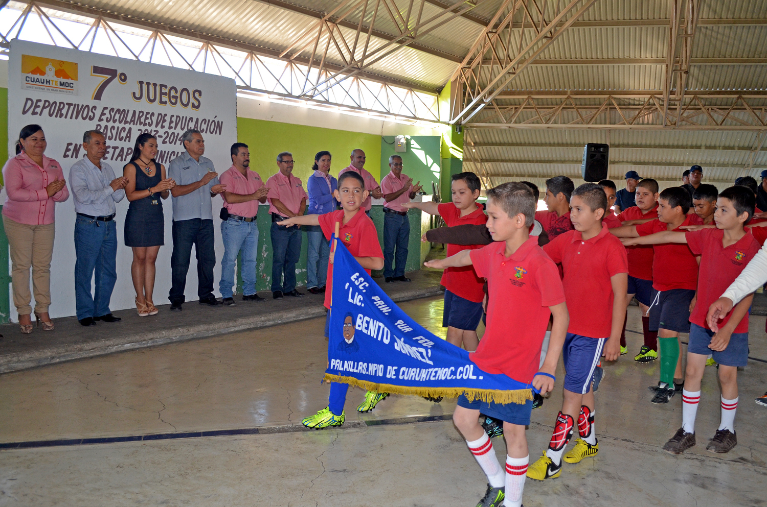 Cabe señalar que el acto dio inicio con los tradicionales honores a la bandera con la participación de la escolta de la secundaria No. 5 José Mora y Verduzco y la banda de guerra de la Dirección de Seguridad pública del municipio, así como el desfile de los equipos participantes correspondientes a todos los preescolares, primarias y secundarias del municipio, con la aclaración de que para representar a Cuauhtémoc en la etapa estatal de estos juegos habría un seleccionado de acuerdo a la consideración de los profesores de educación física, pues tan sólo de nivel primaria estarían participando 692 alumnos en las disciplinas de futbol varonil y femenil, baloncesto, volibol, balonmano, atletismo y ajedrez.
