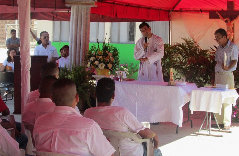 13938059277_df016f3b66_cComo parte de los programas de rehabilitación y unión familiar que realiza la Secretaría de Seguridad Pública de Gobierno del Estado, por medio de la Dirección General de Prevención y Reinserción Social; nueve internos del Centro de Reinserción Social de Manzanillo realizaron su primera comunión, con el apoyo del equipo pastoral penitenciario; mismo que dio fe del acto religioso celebrado en la explanada escolar de dicho centro en el que los reclusos estuvieron acompañados de familiares y autoridades penitenciarias.