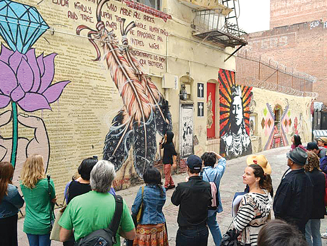 El artista recordó que “los murales en Los Ángeles surgieron en la década de los 60 como un recurso de protesta social por pintores del movimiento chicano”. Y explicó que, por lo general, hasta hoy los muralistas restauran sus obras con fondos propios o gestionan subvenciones en fundaciones artísticas.