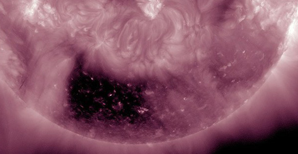 • agujero-cuadrado-NASAEl fenómeno se llama ‘agujero coronal’ y «es una de las características más notables del Sol tardío».