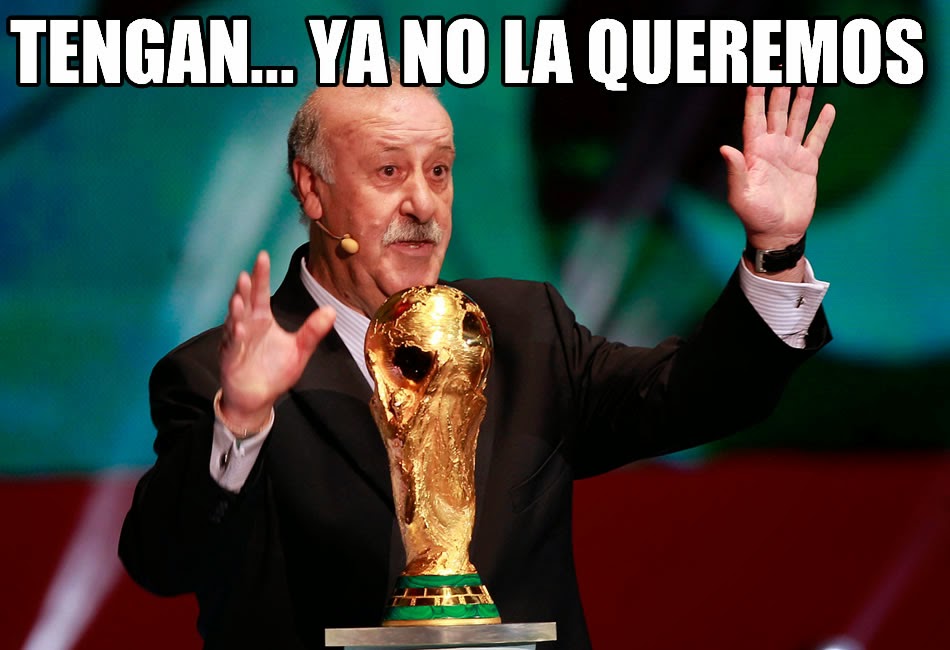 España se ha convertido en la decepción mas grande del Mundial después de haber sido el campeón hace 4 años, ni modo, todo lo que sube tiene que bajar y afortunadamente, hoy contamos con el ingenio del Internet (hace 4 años también pero no era tan exitoso) para explicar esto gráficamente.