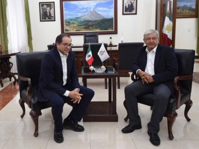 El encuentro entre López Obrador y Peralta Sánchez tiene lugar en el interior del Palacio de Gobierno de la capital.