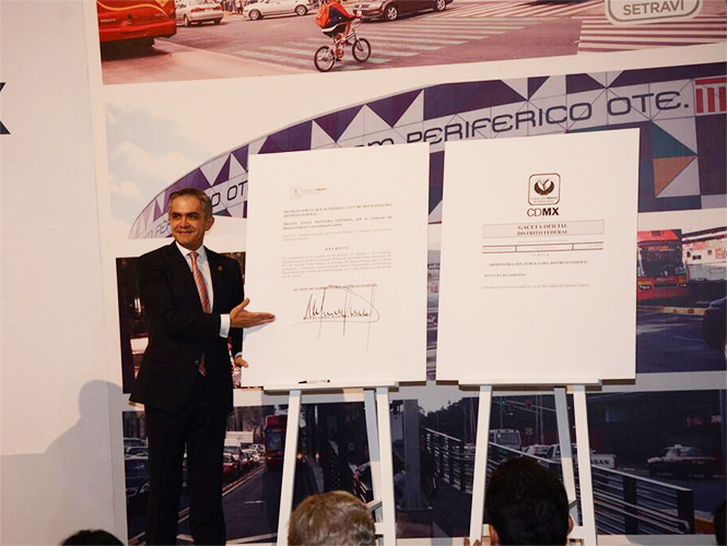CIUDAD DE MÉXICO, 14 de julio.- Miguel Ángel Mancera, jefe de Gobierno del Distrito Federal, promulgó la Ley de Movilidad de la Ciudad de México, que da pie al cambió de nomenclatura de la Secretaría de Transportes y Vialidad (Setravi) a la Secretaría de Movilidad, cuya tarea primordial será priorizar al peatón y reconocer el derecho a un tránsito más accesible, seguro y eficiente en la capital del país.