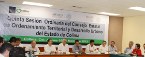 En la sesión donde también se entregó el Atlas de Riesgo de Colima y la Carpeta Básica de Expropiación de Reserva Territorial para Construcción de Vivienda de Interés Social y Desarrollo Urbano en Cofradía de Juárez, Armería; el funcionario federal pidió al mandatario estatal los proyectos y las conclusiones de los programas presentados, para que en la Conferencia Nacional de Ordenamiento Territorial, la entidad se signifique como ejemplo nacional.