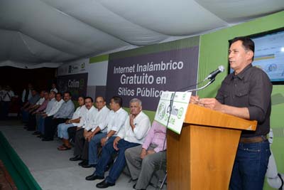 El gobernador Mario Anguiano Moreno izó bandera como zona de wifi en el municipio costero de Tecomán, en donde beneficiará a más de 100 mil habitantes con el servicio de internet inalámbrico gratuito a través del programa Colima OnLine.