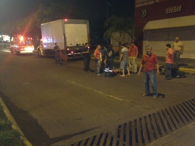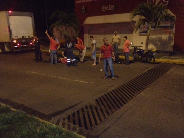 VILLA DE ALVAREZ, COLIMA.- Alrededor de las 23:15 hrs un motociclista fue embestido por un vehiculo Oldsmobile tipo eurosport, color blanco el cual se dio a la fuga y dejo sobre el pavimento al conductor de la motocicleta esto sucedio sobre la avenida Benito Juarez frente a la cerveceria SOL.